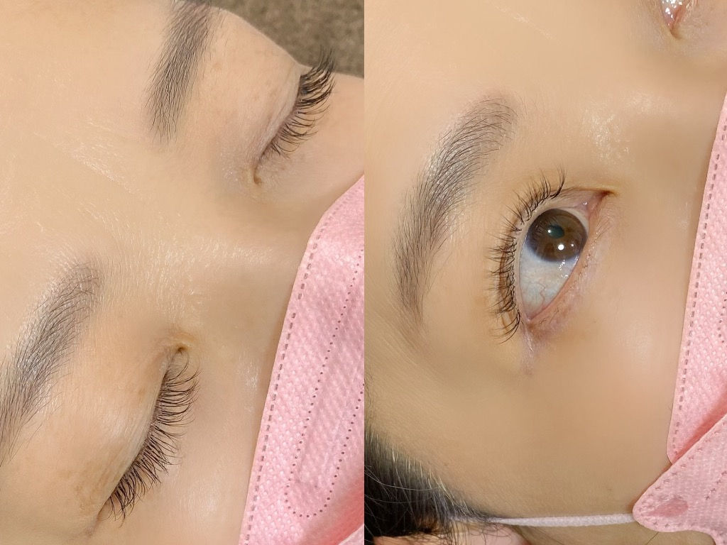 施術では、専用のセット剤で毛の流れを柔らかく整え、