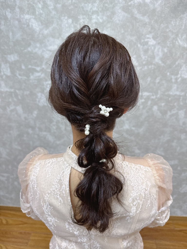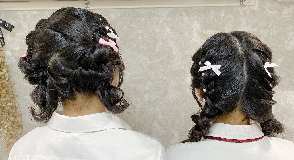 レースリボンやハート、リボンを一緒に編み込むようなスタイルはヘアスタイルの組み合わせなどによりお時間がかかることがございますので、予めお問い合わせくださいませ。