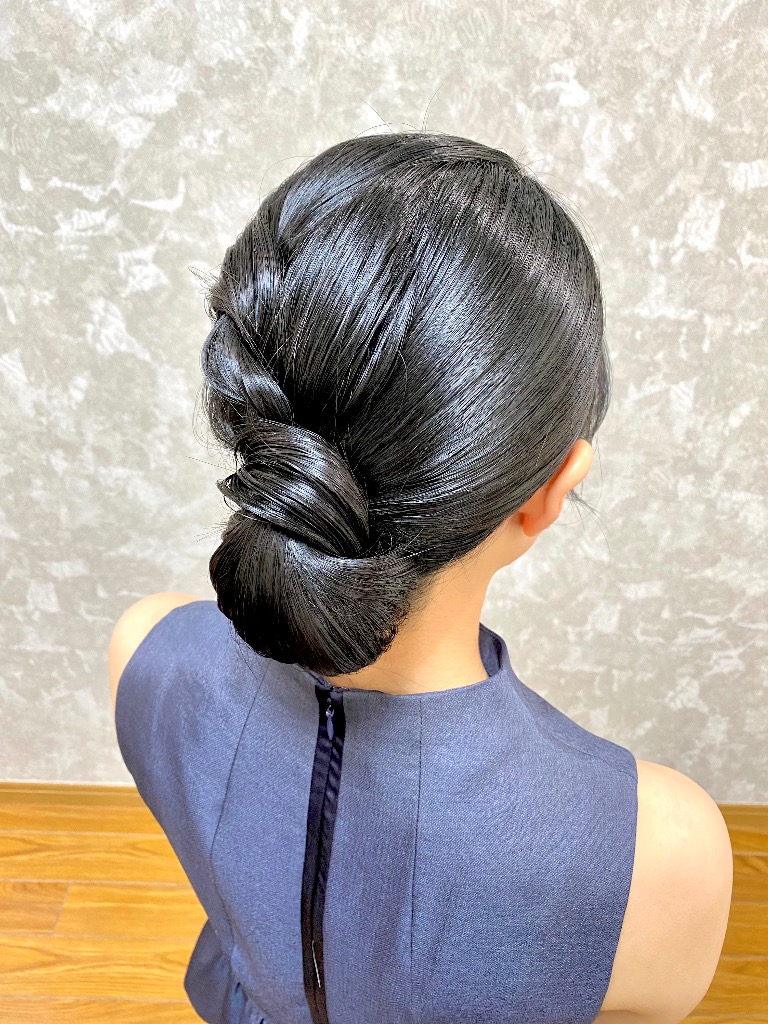 すっきりとした印象に仕上がり、着物やドレスにもぴったり。